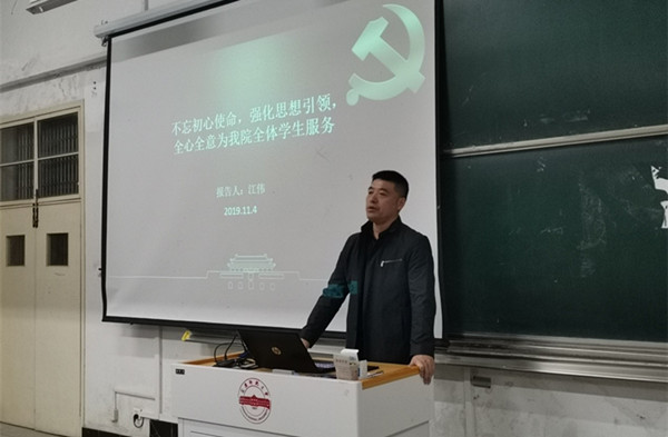 为深入开展“不忘初心、牢记使命”主题教育,贯彻落实公司主题教育工作会议精神和重点工作安排,2019年11月4日晚,公司党委副书记江伟以《不忘初心使命,强化思想引领,全心全意为公司全体员工服务》为题,在稼先楼一楼阶梯教室为员工第三、第四党支部全体党员作“不忘初心、牢记使命”主题教育专题党课报告。