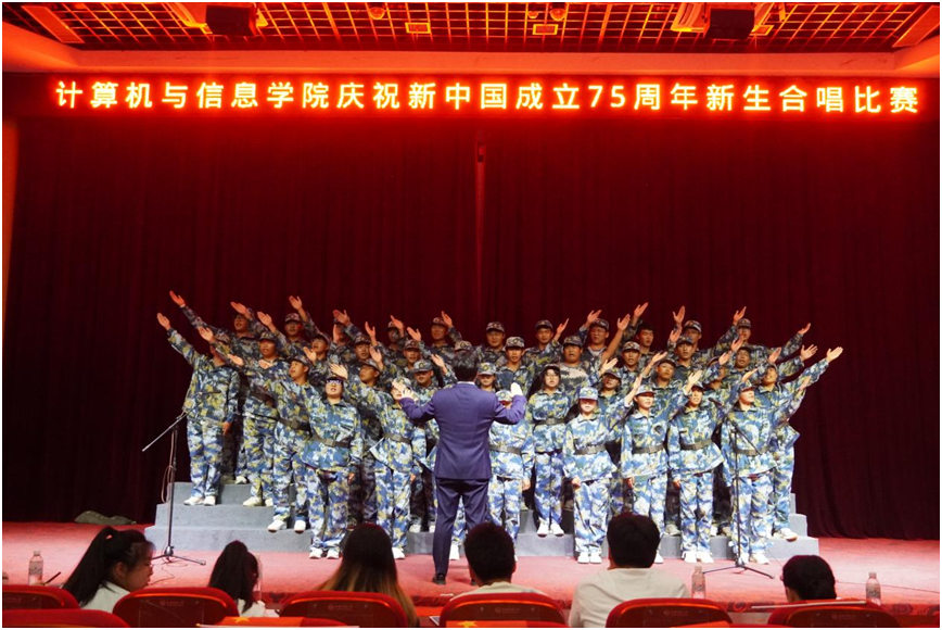 率先出场的是2024级计算机9班的同学带来比赛曲目《没有共产党就没有新中国》,9班同学的歌声激昂有力,他们以整齐的队形、昂扬的斗志和深情的演唱,赢得了现场观众的阵阵掌声。2024级计算机3班的同学们激情唱响《强军战歌》,唱出不仅是对伟大军人的崇高礼赞,更是我们强国梦想坚定信念的体现,彰显了强军精神的伟大力量。