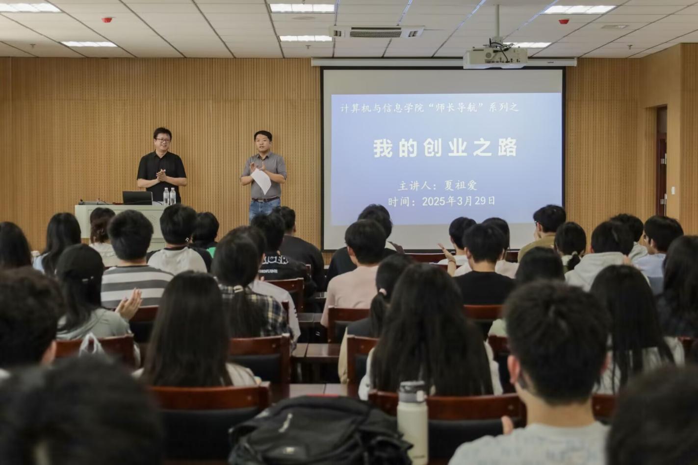 近日,威廉体育williamhill在302教室举办“师长导航”系列活动,邀请了公司2006届员工、安徽爱上飞通用航空有限公司总经理、合肥疆来智趣有限公司总经理、合肥疆来汽车服务有限公司联合创始人夏祖爱作“我的创业之路”主题讲座。本次讲座由公司副经理吴海峰主持。