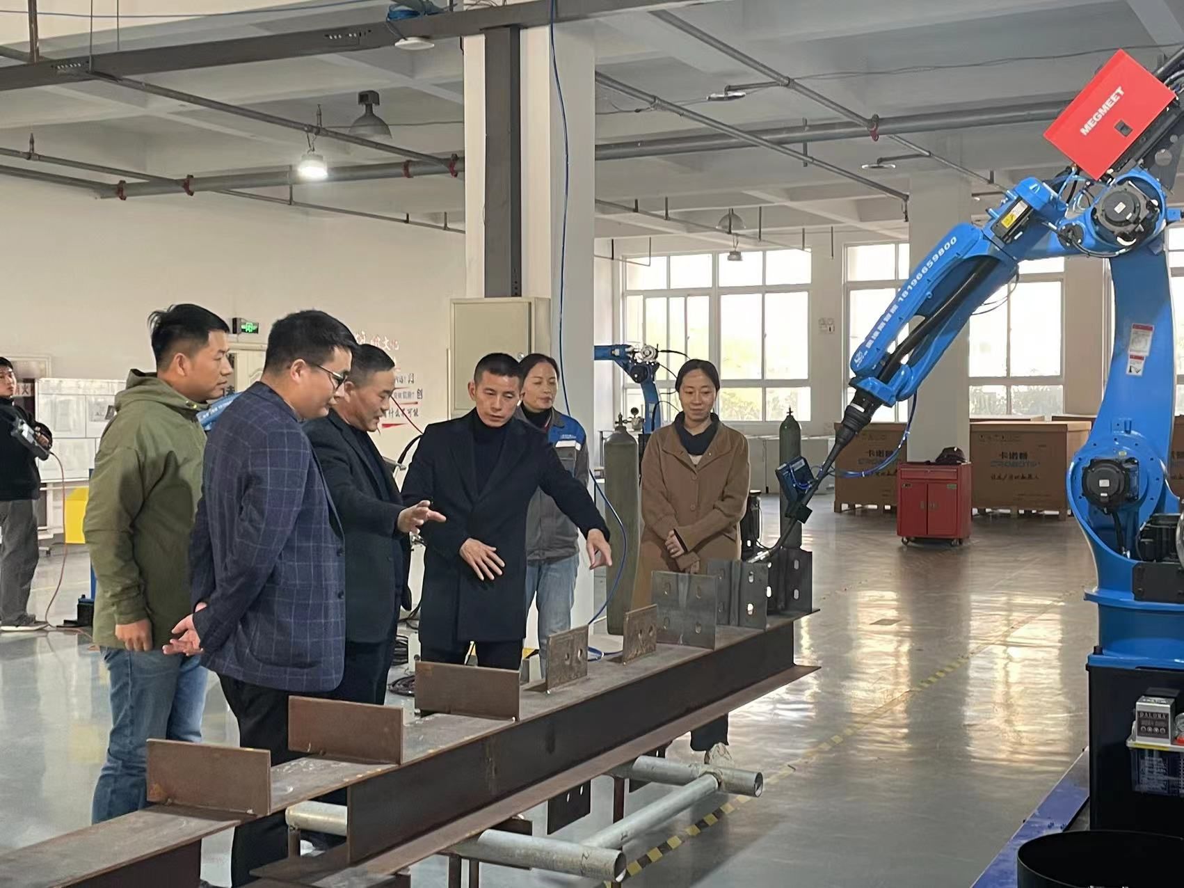 王远志一行实地参观了企业的研发中心和应用中心,观看了企业在机器人、机器视觉等领域的先进技术和工业应用。王远志介绍了公司基本情况和人工智能产业公司建设现状。他表示,现代产业公司作为“产教融合”的创新模式,通过引导高校面向区域、面向行业、面向产业办学,培养出发展所需要的特色型技术人才。产业公司将通过与企业的紧密合作,更好地满足社会对人才培养的需求,提高员工就业竞争力。通过校企联合招生,将课程内容、教学方式与生产实践对接,企业需要什么岗位的人才,公司订单式设置相关专业和课程。吴海峰介绍了公司毕业生实习就业等情况,希望双方加强校企合作,逐步将订单式培养落到实处,并表示期待在相关专业的实习和就业上与企业达成深度合作。奥维斯智能设备公司负责人介绍了公司的规模、业务领导、科研团队,并提出了在人工智能、机器人领域的人才需求情况,表达了期待与公司相关专业合作进行人才培养的愿景。物联网工程专业负责人汪文明和智能科学与技术专业负责人施赵媛分别介绍了相关专业人才培养方案,表达了相关专业在员工实践技能培养方面的迫切需求。双方就订单式人才培养的课程设置和培养方案进行了深入讨论。