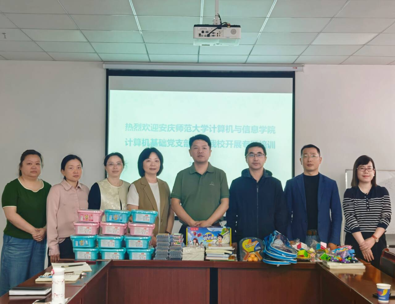 培训之后,支部向起点公司捐赠图书、画笔、黏土、羽毛球等文体用品,以暖心行动传递对特殊儿童的关怀。支部书记江健生表示:“作为高校基层党组织,我们既要筑牢科技报国的信仰之基,更要用技术传递人文温度。此次党日活动是党建与专业深度融合的创新实践。”