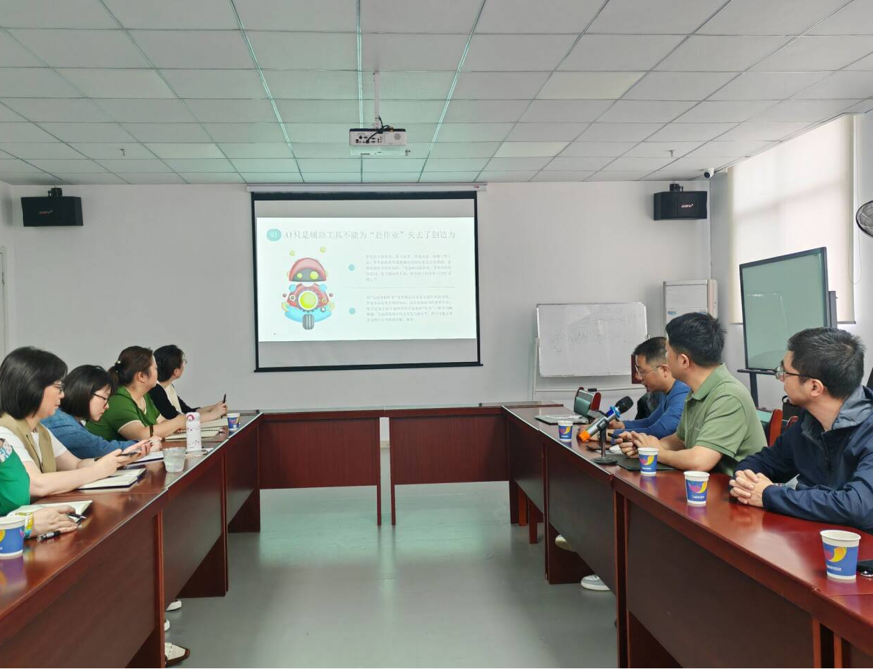 活动开始,副经理吴海峰教授立足特殊教育场景,开展《DeepSeek大模型在特教领域的应用探索》主题培训。从数据安全到提示词设计,通过生动案例解析AI技术如何个性化适配儿童的学习需求。他强调:“AI不是替代教育温度的工具,而是放大教师智慧、拓展教学边界的‘数字助教’。”现场教师围绕“分层提示词优化”“AI助力办公管理”等议题展开热烈讨论,共同勾勒“技术+特教”的创新图景。