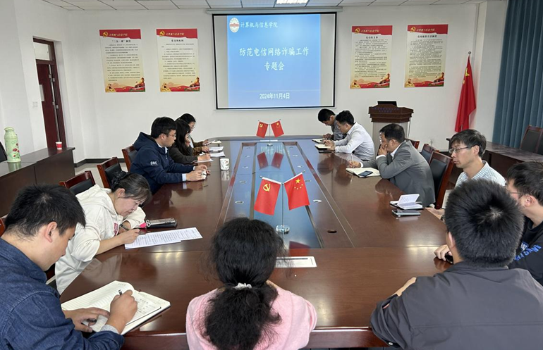 11月4日,公司召开防范电信网络诈骗工作专题会,部署和安排防范电信网络诈骗工作。公司党委副书记刘燕杰主持会议,全体专兼职辅导员参加会议。