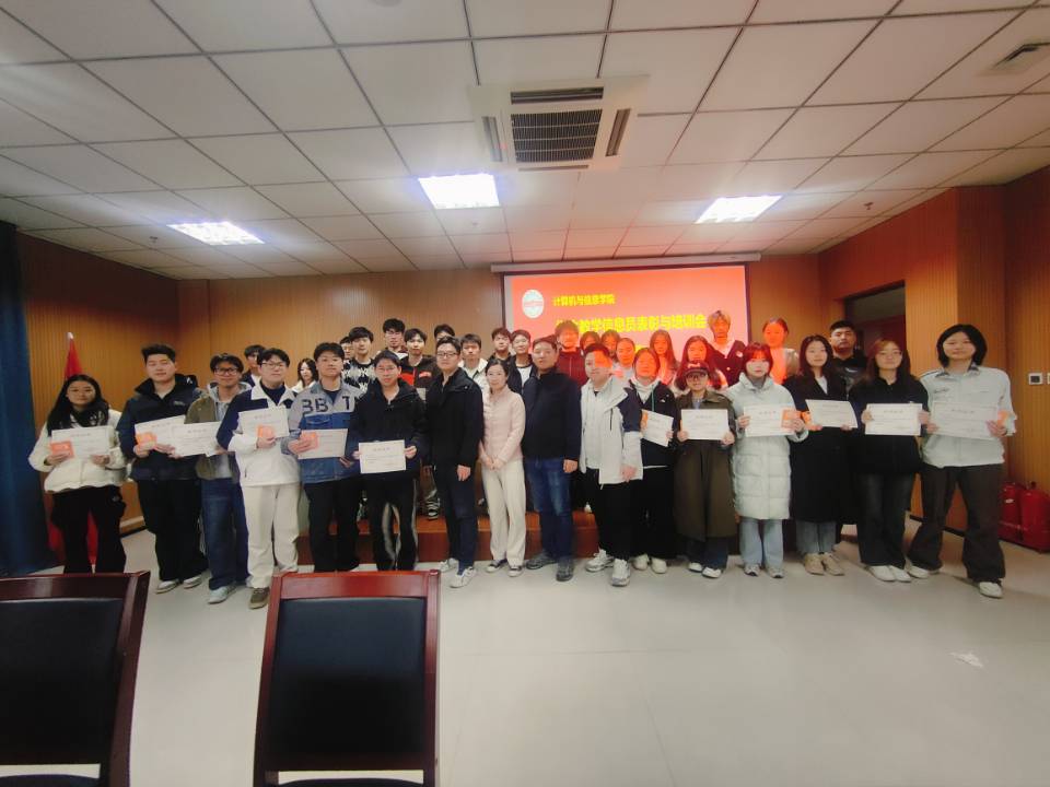 会议对全体教学信息员在过去一学期的辛勤工作表示了感谢,并充分肯定了他们在教学管理工作中发挥的重要作用。随后,会议表彰了杨嵘等60名“优秀教学信息员”,吴海峰为获奖同学颁发了荣誉证书和奖品。