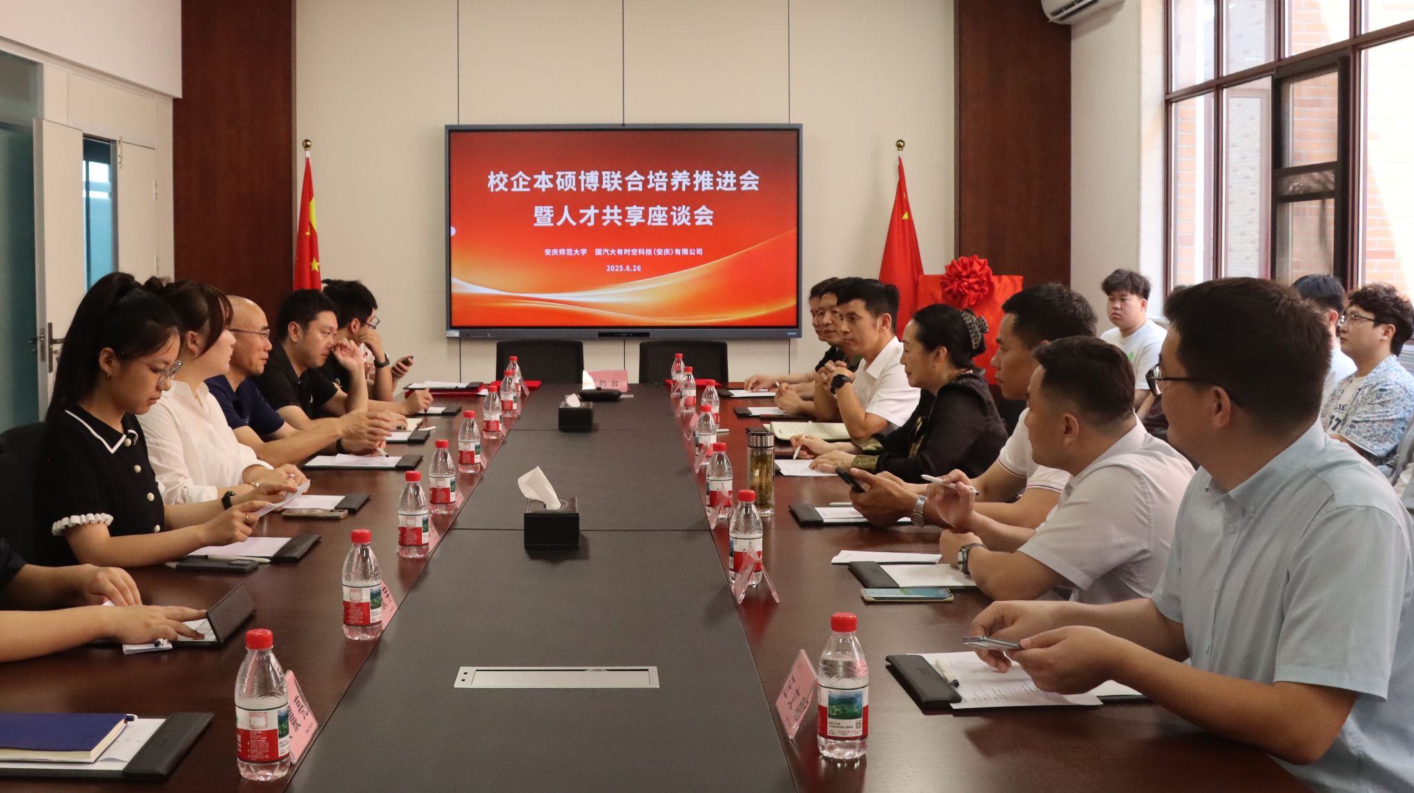 6月26日上午,公司党委常委、副董事长吴琼率队赴国汽大有时空科技(安庆)有限公司,参加校企本硕博联合培养推进会暨人才共享座谈会并开展访企拓岗工作。教务处、研究生院负责人以及公司领导班子参加活动。