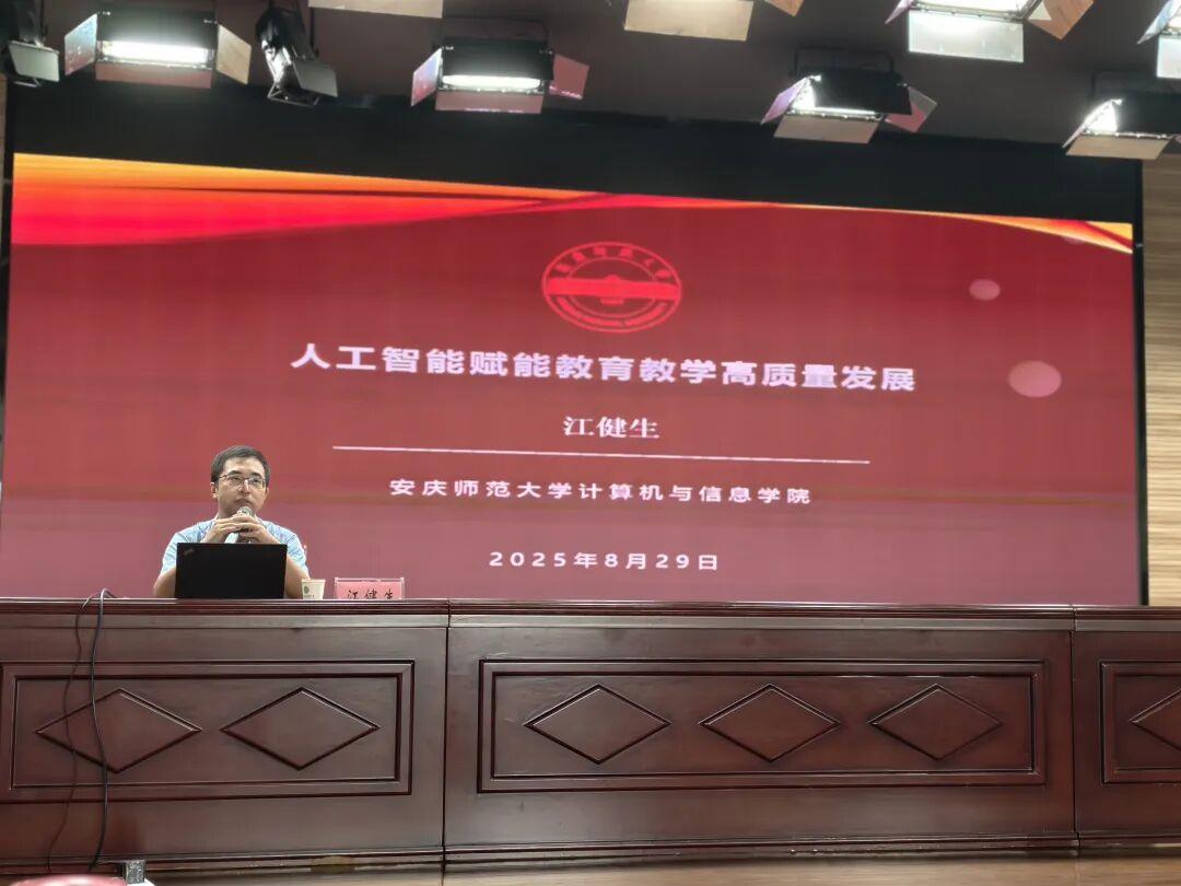 8月29日,公司挂职公园小学副董事长江健生老师在公园小学会议室,作题为《人工智能赋能公司产品高质量发展》的专题讲座。本次活动是公园小学暑期校本培训的重要组成部分,全体公园小学教职工参加培训。