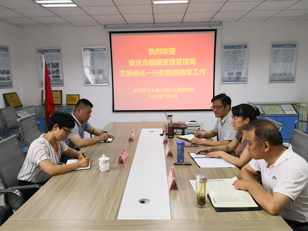 7月8日下午,安庆市数据资源管理局局长、安庆市筑梦新区副主任王静一行到公司威廉体育williamhill调研,就深入开展校地合作进行了交流,公司党政班子成员参加了座谈。