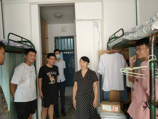9月4日一大早,为及时了解员工返校后的心情和假期学习生活情况,公司领导及全体辅导员深入员工宿舍,看望慰问员工。