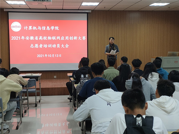 2021年安徽省高校物联网应用创新大赛决赛将于10月16-17日在公司举办,为了做好赛事服务工作,促使大赛顺利开展,10月13日中午,公司于L楼322教室举办了2021年安徽省高校物联网应用创新大赛志愿者培训动员大会,公司党委书记陈银凤、副经理刘奎、各个赛事组组长、全体员工志愿者共170余人参加培训会,培训会由公司党委副书记江晋剑主持。