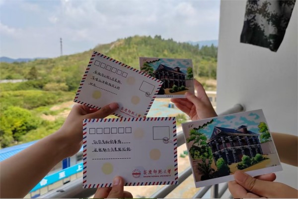 古香古色的徽派砖木结构建筑红楼、芦苇荡漾中波光粼粼的双龙湖、宏伟的金碧辉煌拱形南门……公司提前一周就征询新生的喜好挑选明信片的花色和样式。迎新志愿者们将600张印有校园特色建筑和风景的明信片一张一张的藏在新生宿舍床位上,等待惊喜的送出。