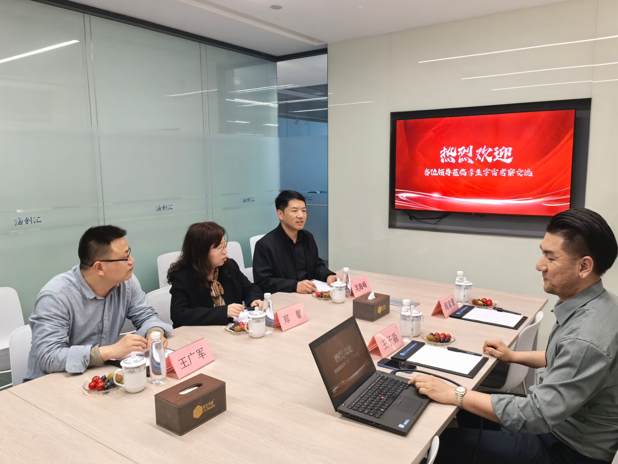 随后,吴海峰一行参观了合肥孪生宇宙科技有限公司的研发中心,了解了公司在虚拟现实领域的最新研究成果和技术应用,以及在教育、游戏和人工智能等领域的解决方案,展示了公司的AI技术在多领域的应用潜力。参观结束后,吴海峰与公司负责人就实习岗位设置及拟接收人数进行了进一步交流。