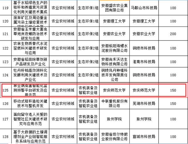 日前,安徽省2019年科技重大专项揭晓,公司刘奎博士主持申报的“林业病虫害智能化监测预警平台研发及应用示范”项目成功立项,并获得150万元的科技经费资助。这是公司继2018年首次成功申报该项目后的又一新突破。