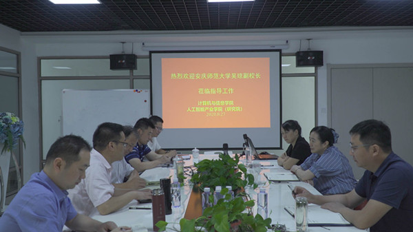 8月27日下午,公司党委常委、副董事长吴琼来公司调研指导工作,在安庆市筑梦新区人工智能产业公司(研究院)常驻办公地现场查看了公司的建设情况,参观了相关项目成果展,现场听取公司主要负责同志有关公司建设与发展情况的工作汇报,就公司发展存在的问题进行了研讨。公司党政主要领导、人工智能产业公司有关负责同志参加了调研活动。